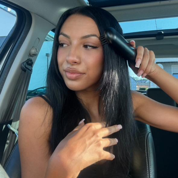 Es stehen dir verschiedene Stylingmöglichkeiten zur Verfügung. Ob glatte oder wellige Haare - unsere Glättbürste eignet sich für alle Haartypen und verleiht jeder Frisur den perfekten Glanz.